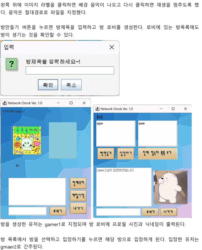 (3) 전체 게임 관리 GUI(게임운영 방, 선택, 해제 등 관리 기능)