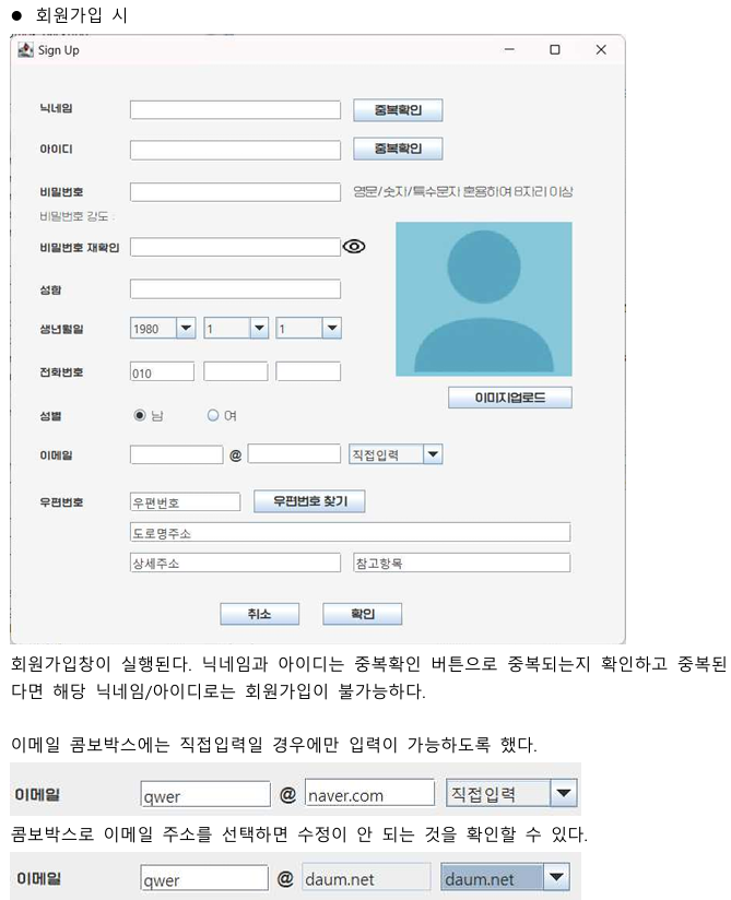 - 생년월일 및 이메일 콤보박스 구현 여부