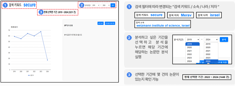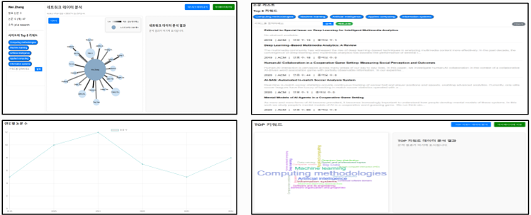 - 연구 동향 분석 시스템은 사용자가 직접 읽고 분석하는 대신 다양한 분석 시나리오를 통해서 사용자에게 필요한 정보를 더욱 효율적으로 제공할 수 있으며 이를 통해 시간과 비용을 절약할 수 있음