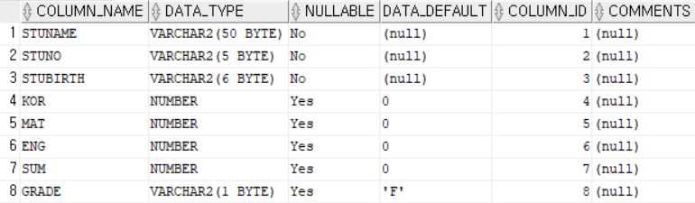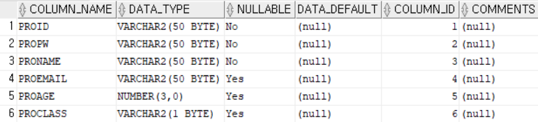먼저 테이블을 SQL Developer를 이용하여 미리 구성한다.